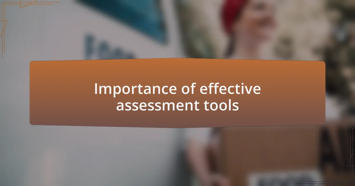 Effective assessment tools are crucial for charitable organizations to ensure that donations are directed where they are most needed. Without accurate measures, I remember feeling frustrated during a fundraising campaign when I realized we lacked solid metrics to evaluate our impact. This oversight made it difficult to communicate our achievements to donors, which in turn affected their trust and willingness to give.