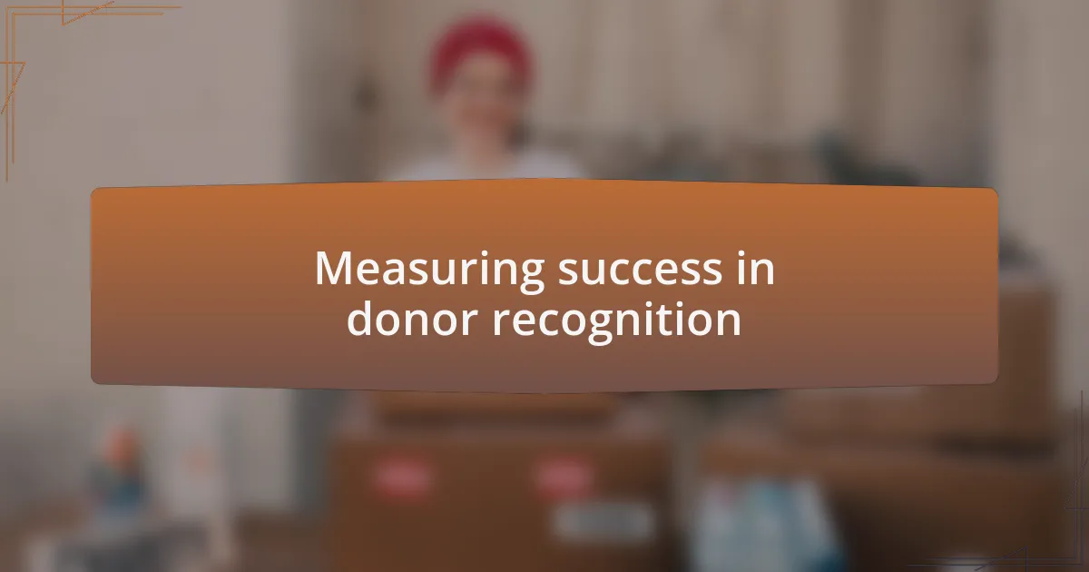 When I think about measuring success in donor recognition, I often reflect on how gratitude can be quantified. For example, I once worked with a nonprofit that tracked the number of repeat donations following personalized recognition efforts. It was surprising to see how a simple thank-you email, customized with details about the impact of the donor’s contribution, led to higher retention rates. Doesn’t that show just how effective targeted acknowledgment can be?